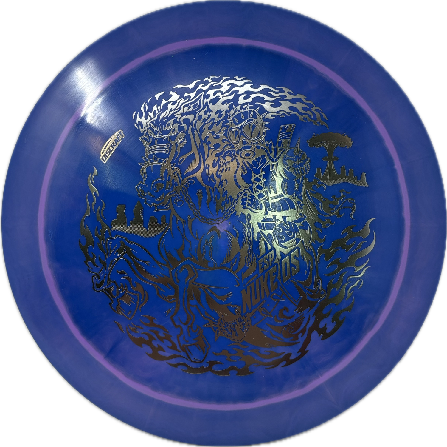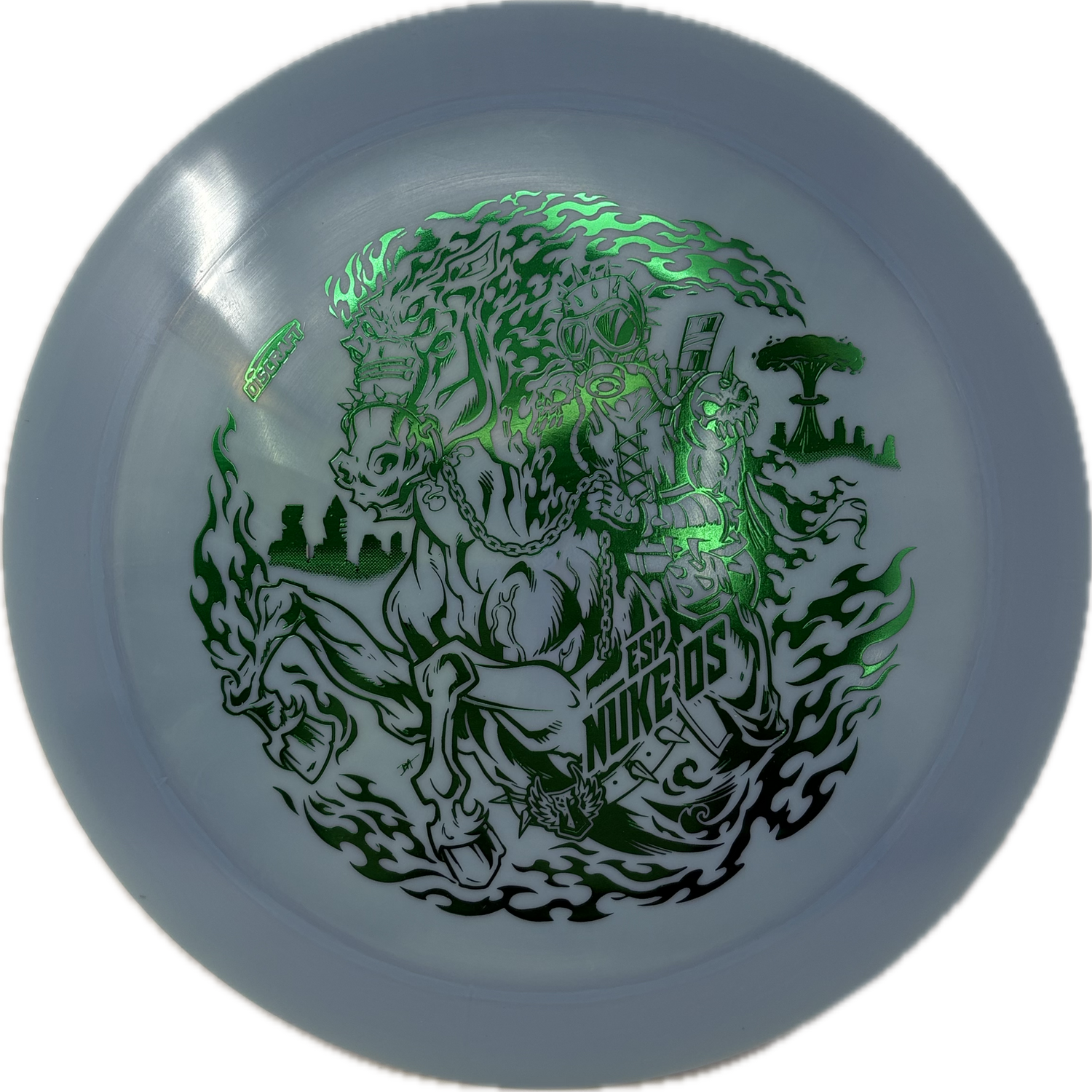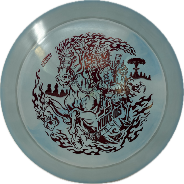 These Darkhorse ESP Nuke OS's are stamped with an incredibly detailed apocalyptic Darkhorse stamp. The Nuke OS will fight any amount of headwind for both backhand and forehand throws and is one of the most overstable discs in Discraft’s lineup.