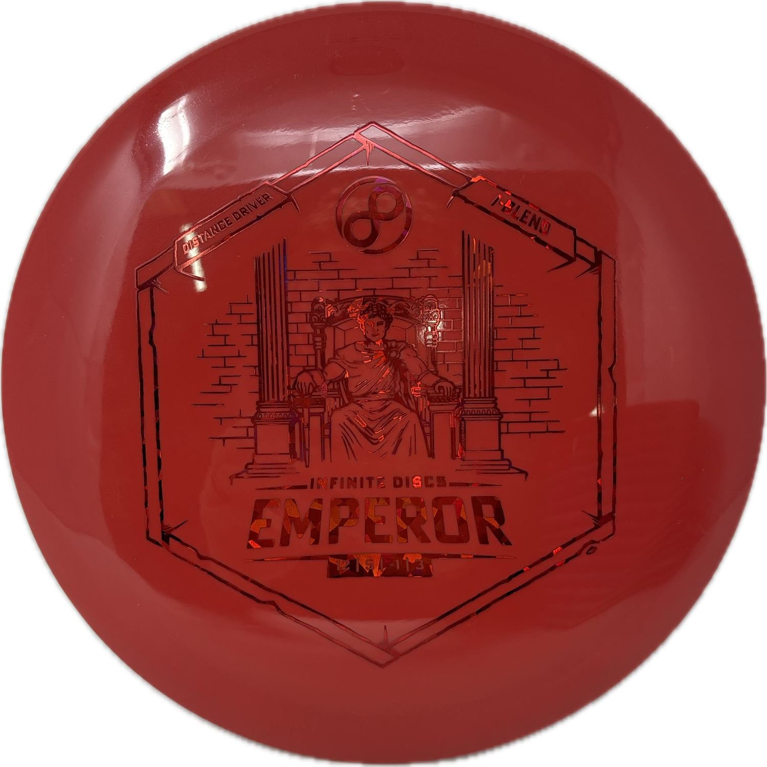 Master the courses with the Emperor by Infinite Discs. This commanding distance driver, boasting a moderate overstable nature, stands unrivaled among its counterparts in the market. Experience the sheer power as the Emperor effortlessly glides through the air, outclassing competitors and setting new standards for distance drivers.