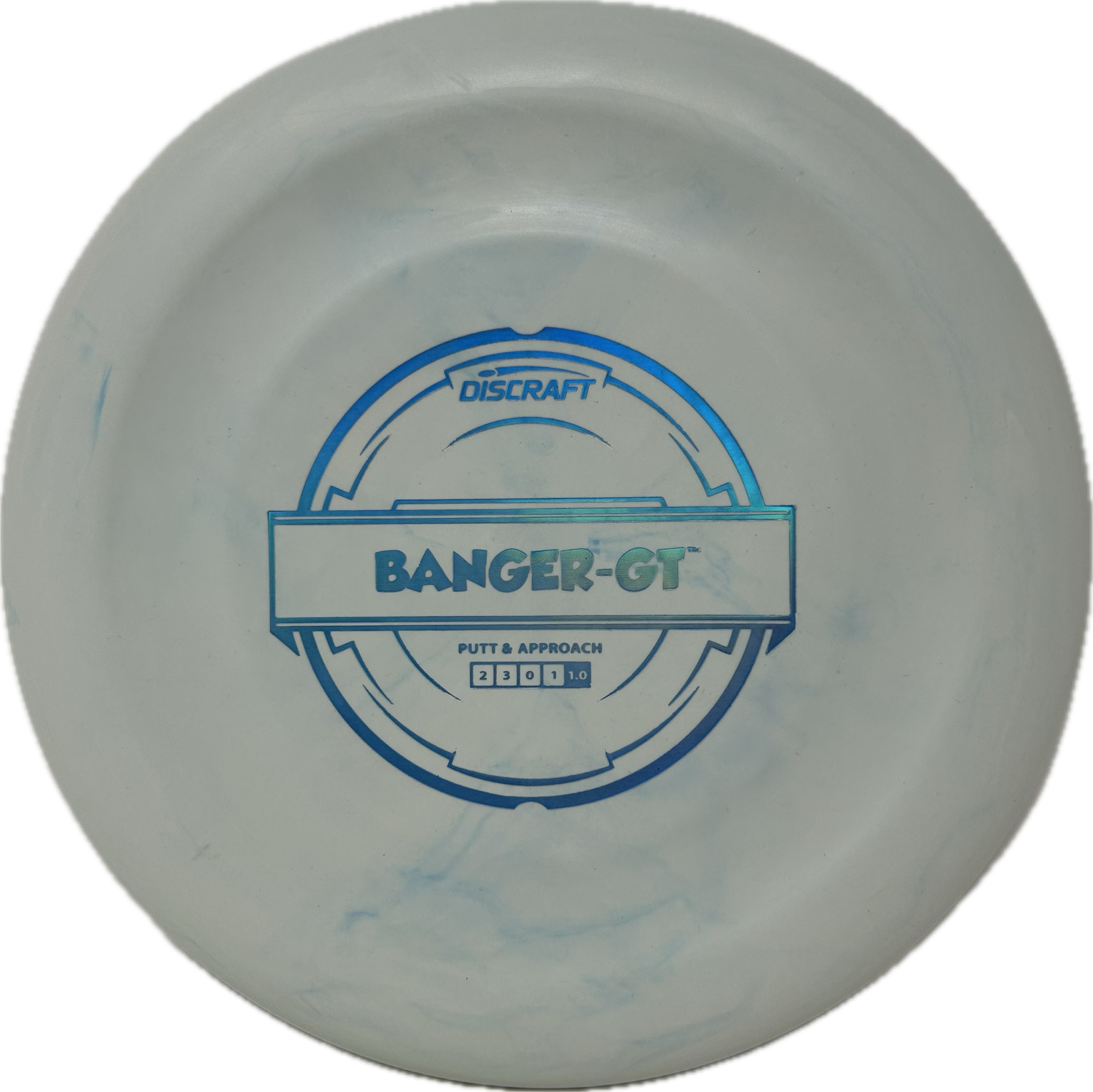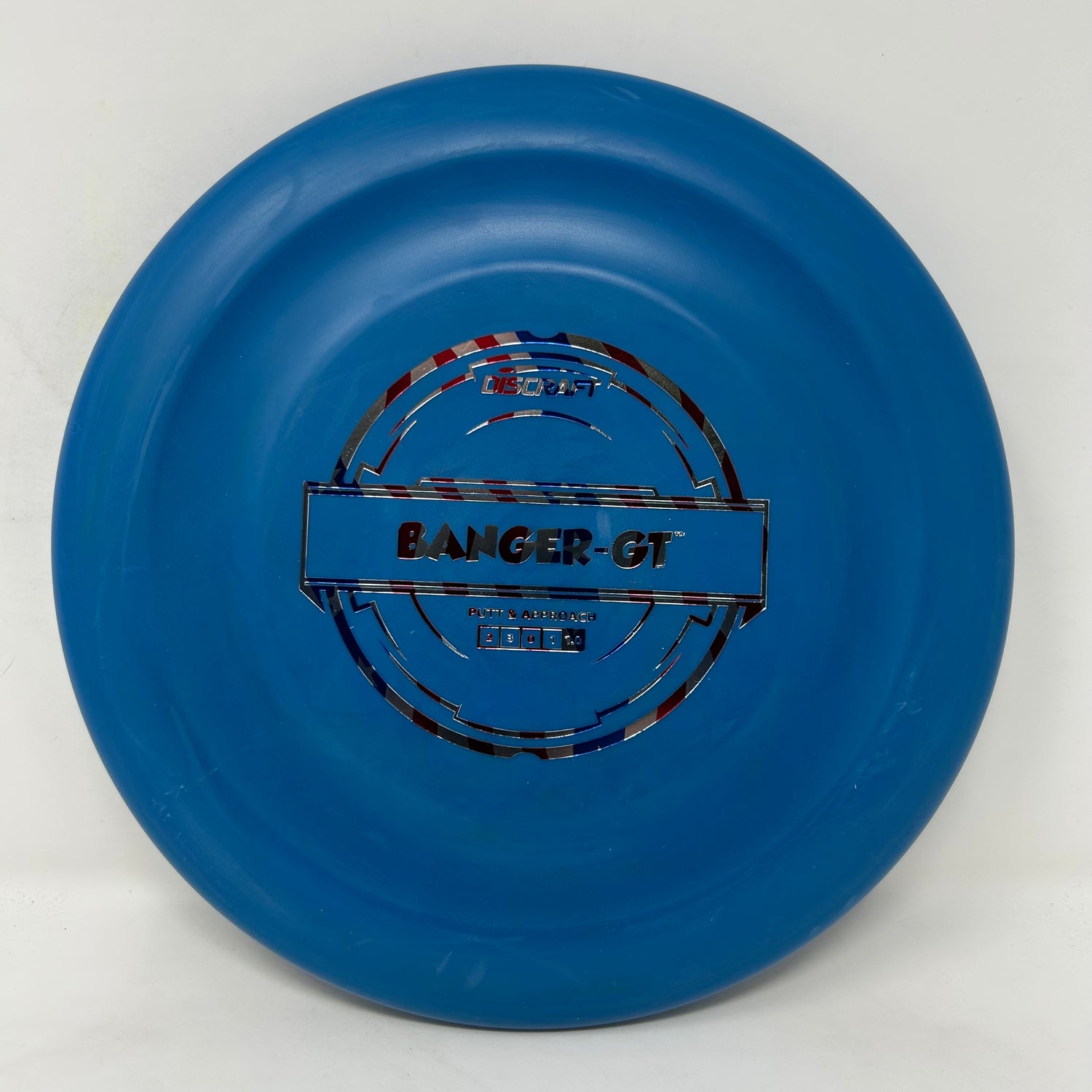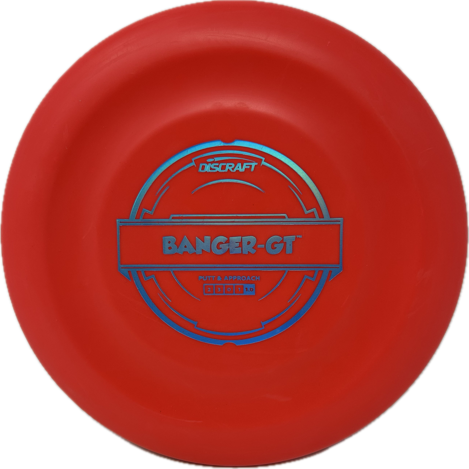 The Banger GT is a great flying and unique putter from Discraft. The GT stands for groove top or some people say grip track. This is because of the indent on the flight plate that provides a place for your thumb when gripping the disc. It has a consistent and smooth release with a straight to slightly overstable flight.