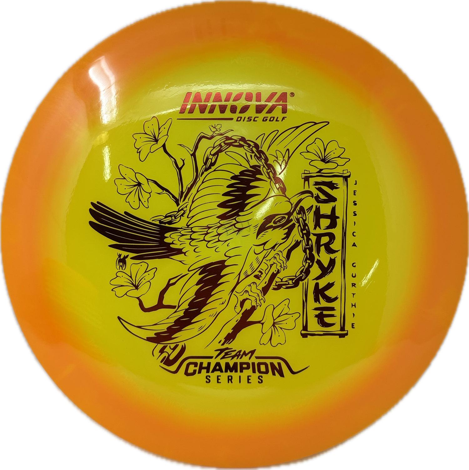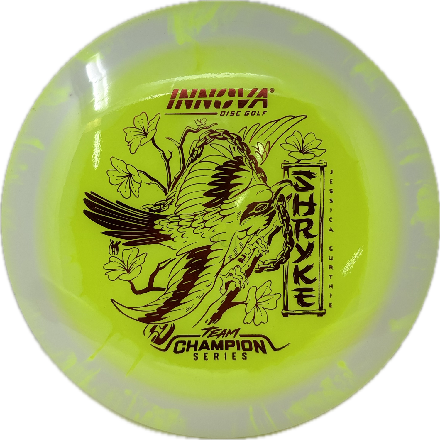 Jessica Gurthie brings smooth power and consistency to the course. The Halo Champion Shryke combines high-speed distance with impressive glide and a manageable finish. It’s perfect for long, controlled drives that stay in the air and finish predictably.