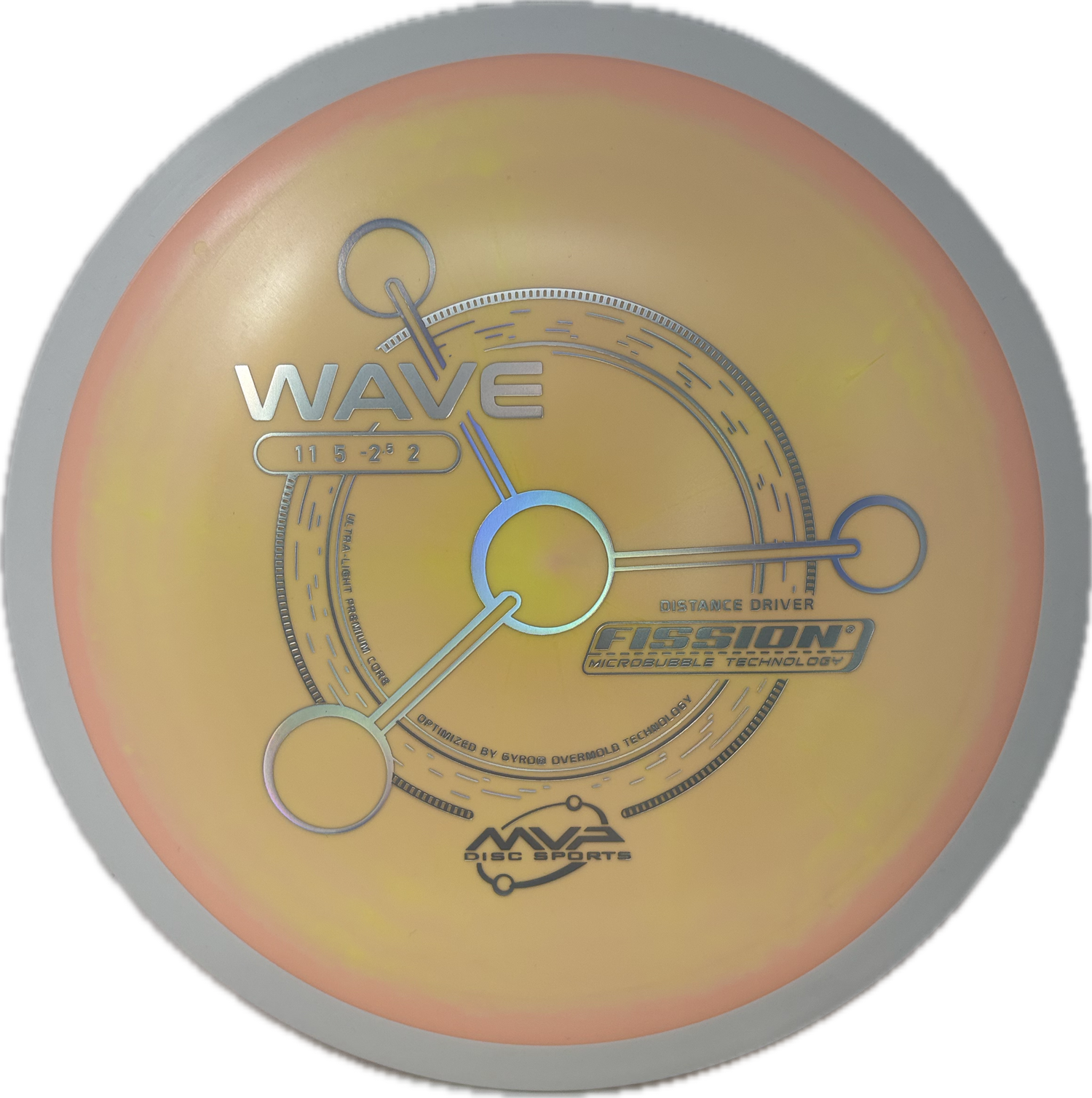 MVP's Fission plastic is unique in that the core of the disc is drastically lighter than the rim when compared to other blends. This increases the gyroscopic nature of discs in this plastic and can lead to farther flights. The feel and durability falls in between a baseline and premium plastic.