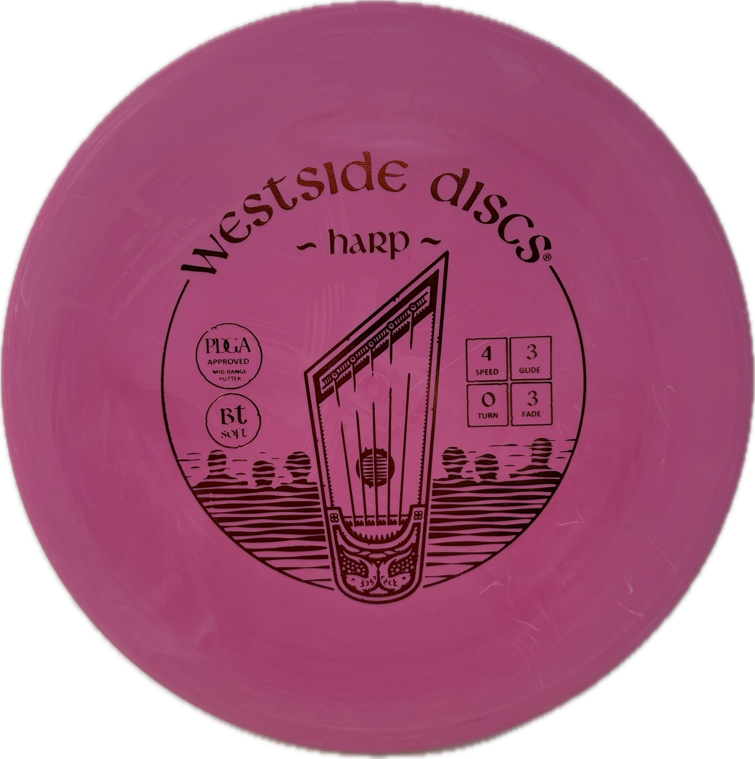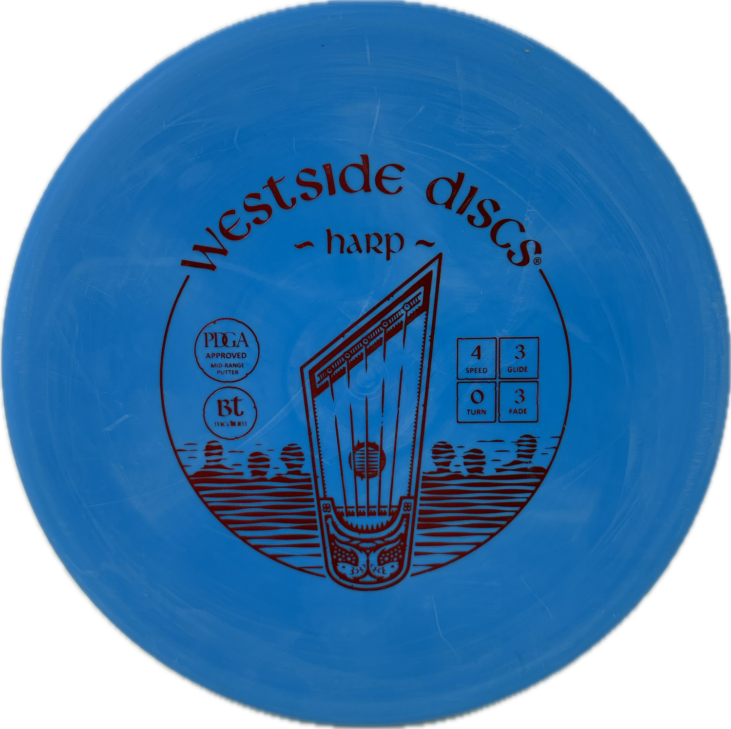 The Westside Harp is one of the most well known approach discs on the market. If you are a forehand approach player, you are missing out if you do not have one in your bag. The BT plastics allow the harp to slowly beat in so that eventually you can have a straight approach disc that still holds up to the wind out on the course.