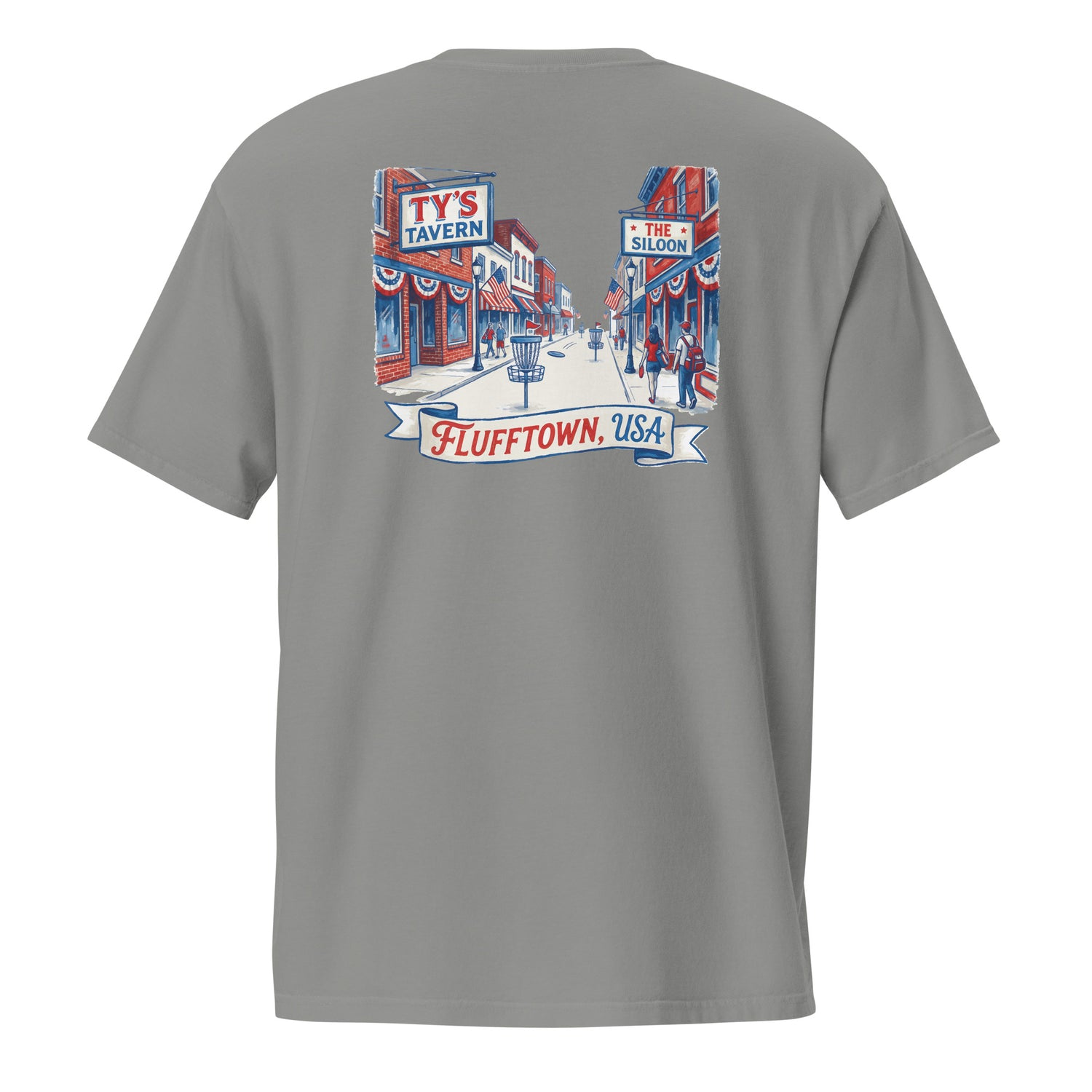 Try the Flufftown Main St. Unisex garment-dyed pocket t-shirt Risk Free!