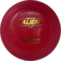 The Alien is like no other disc on the market. Its top resembles a Sonic, its rim is like a mid-range. It is surprisingly stable, maybe even a tad overstable. The Alien thrives in a universe of spin putts, approach shots, and short-range drives.