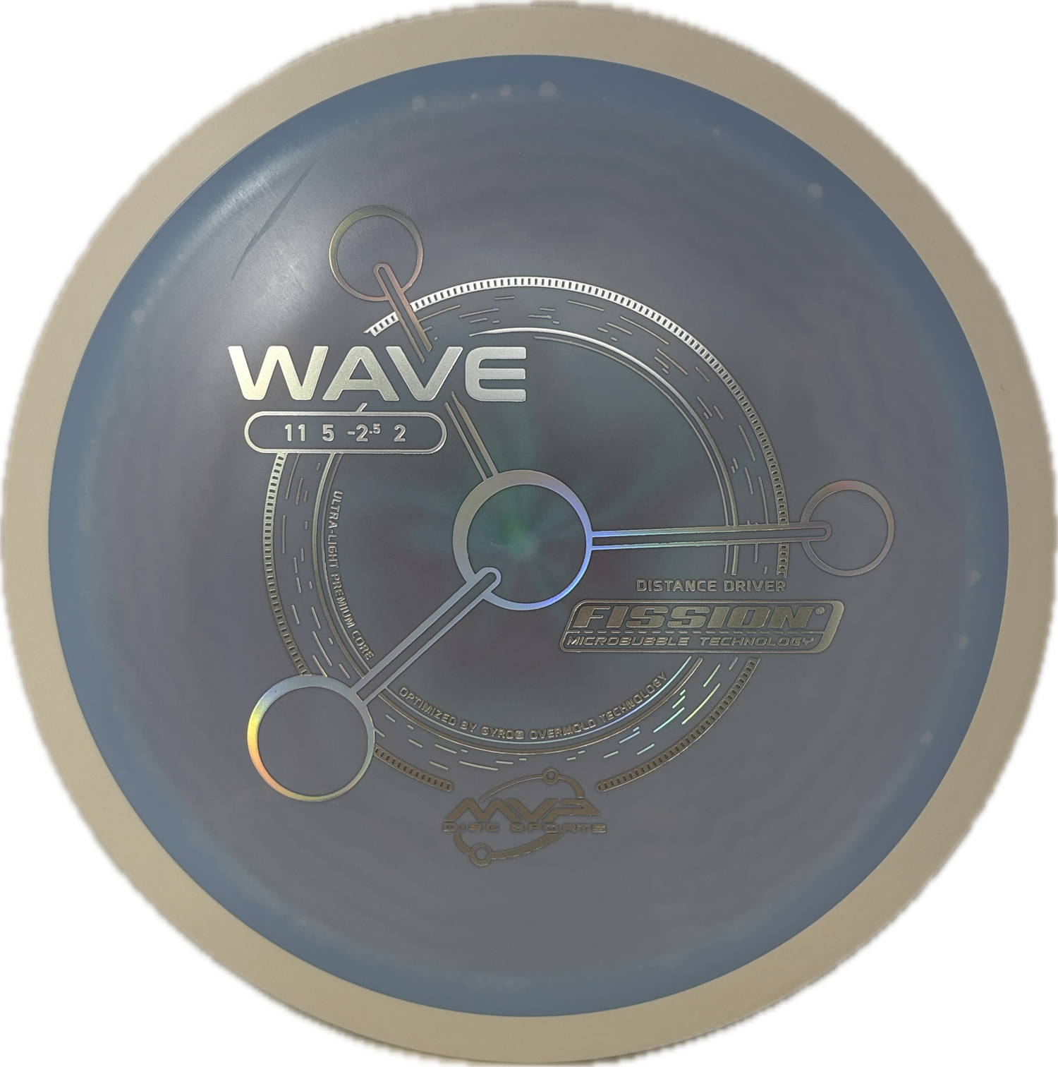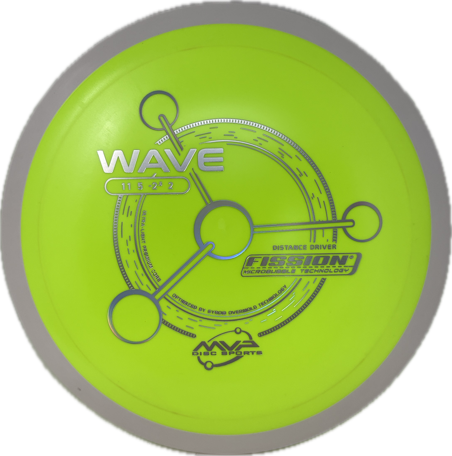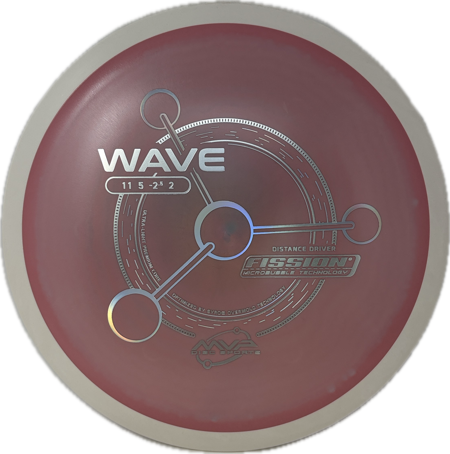 MVP's Fission plastic is unique in that the core of the disc is drastically lighter than the rim when compared to other blends. This increases the gyroscopic nature of discs in this plastic and can lead to farther flights. The feel and durability falls in between a baseline and premium plastic.